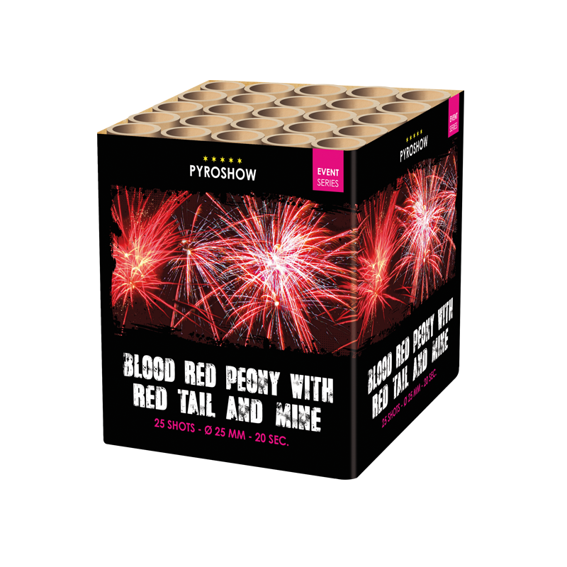 Blood Red Peony w.Red Tail and Mine Goedkoop vuurwerk kopen bij Vuurwerkwinkel Emmerich